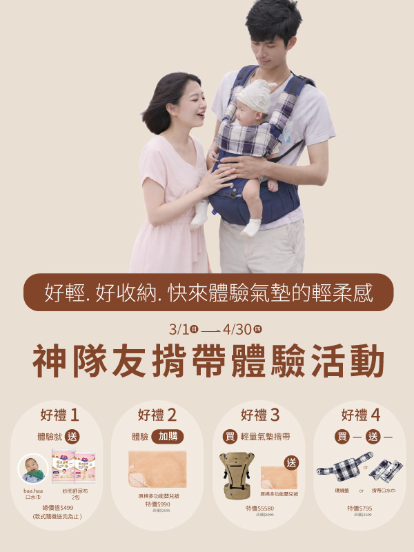 現場體驗輕量氣墊揹帶 + 贈品合照(參加視同同意拍照)