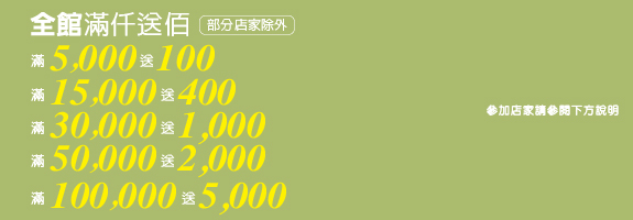 滿6,800元現抵1,000元,滿12,000元現抵1,800元(需含指定款)